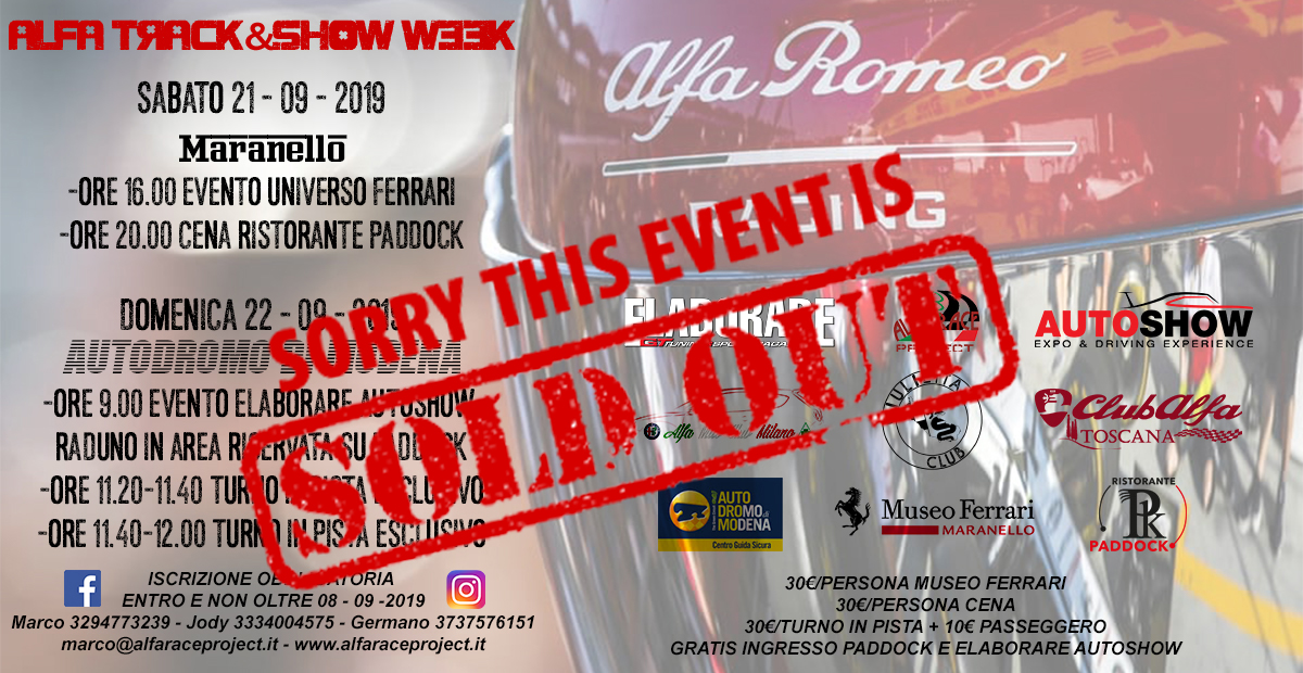 ALFA TRACK&SHOW DAY - 22 SETTEMBRE - AUTODROMO DI MODENA